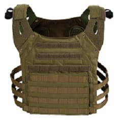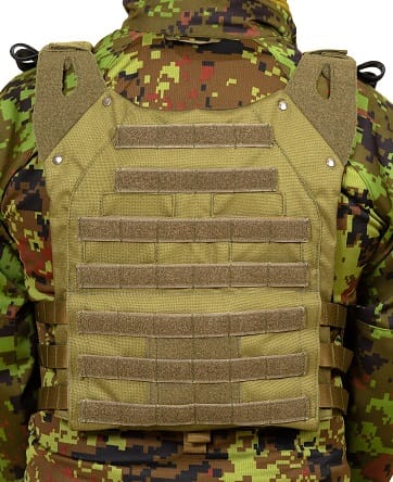 Sotilaallinen vihreä Plate Carrier repulla , malli 119-002-03, on valmistettu Virossa. Se on valmistettu Cordurasta, joka on poikkeuksellisen kestävä materiaali. Laadukkaat materiaalit varmistavat tuotteen käytettävyyden erilaisissa tilanteissa ja sääolosuhteissa. Lautastelinettä voidaan käyttää sekä selkään soljilla kiinnitetyn repun kanssa että ilman. Edessä ja takana on taskut ballististen paneelien sijoittamista varten.