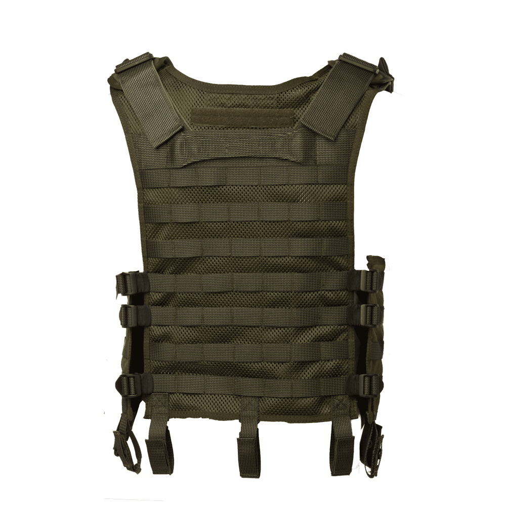 Liivi on varustettu vaakasuorilla olkaimilla MOLLE-järjestelmän pussien kiinnitystä varten, vetoketjullisella etukiinnikkeellä ja kolmella lisäsoljella. Kokoa voi säätää olkapäillä ja sivuilla. Siinä on kaksi suurta etutaskua karttojen ja muiden tarvikkeiden säilyttämistä varten, kahva takana ja lokero nesteytysrakon sijoittamista varten (yhteensopiva tarjoamamme 3 litran nesterakon kanssa). Edessä ja takana on tarranauhat merkkien ja muiden tietojen kiinnittämistä varten, vyölenkit alareunassa. Liivi valmistetaan yhdessä koossa.