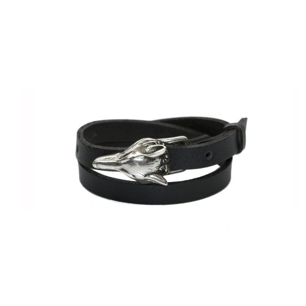 Kaksinkertainen susi solki nahkarannekoru – Matta Hopea